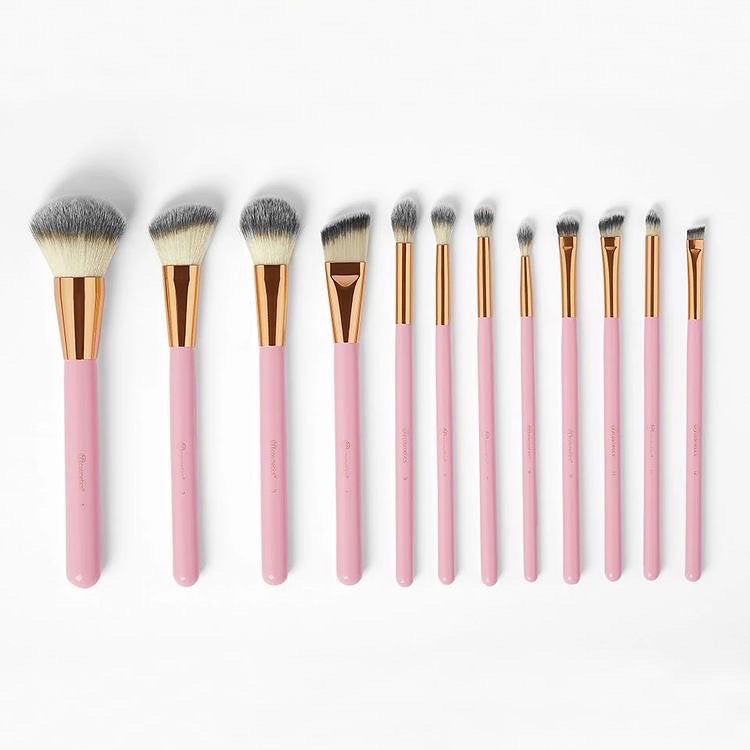 Embrace luxury with the Studded Elegance 12 Piece Brush Set Pink. Complete with a sleek embellished holder, this collection gathers face and eye essentials for the seamless application of liquids, creams and powders. Each brush features silky-soft, synthetic bristles, a gleaming gold ferrule and smooth pink handles – perfect for defining your features while looking beautiful on your vanity.