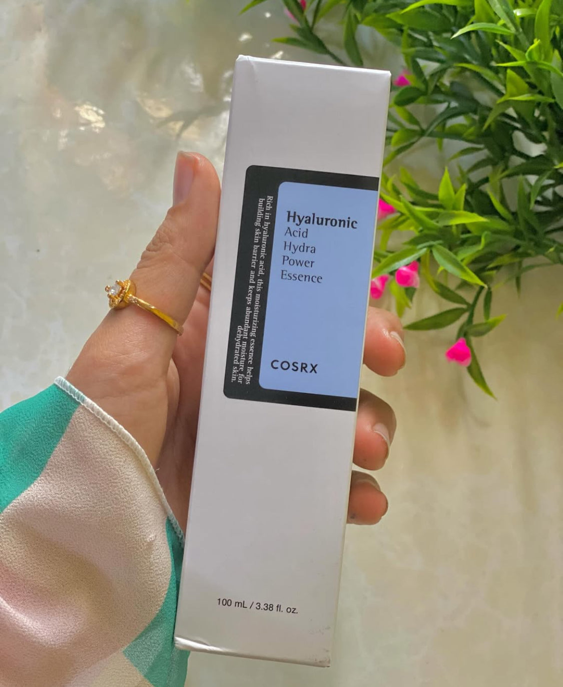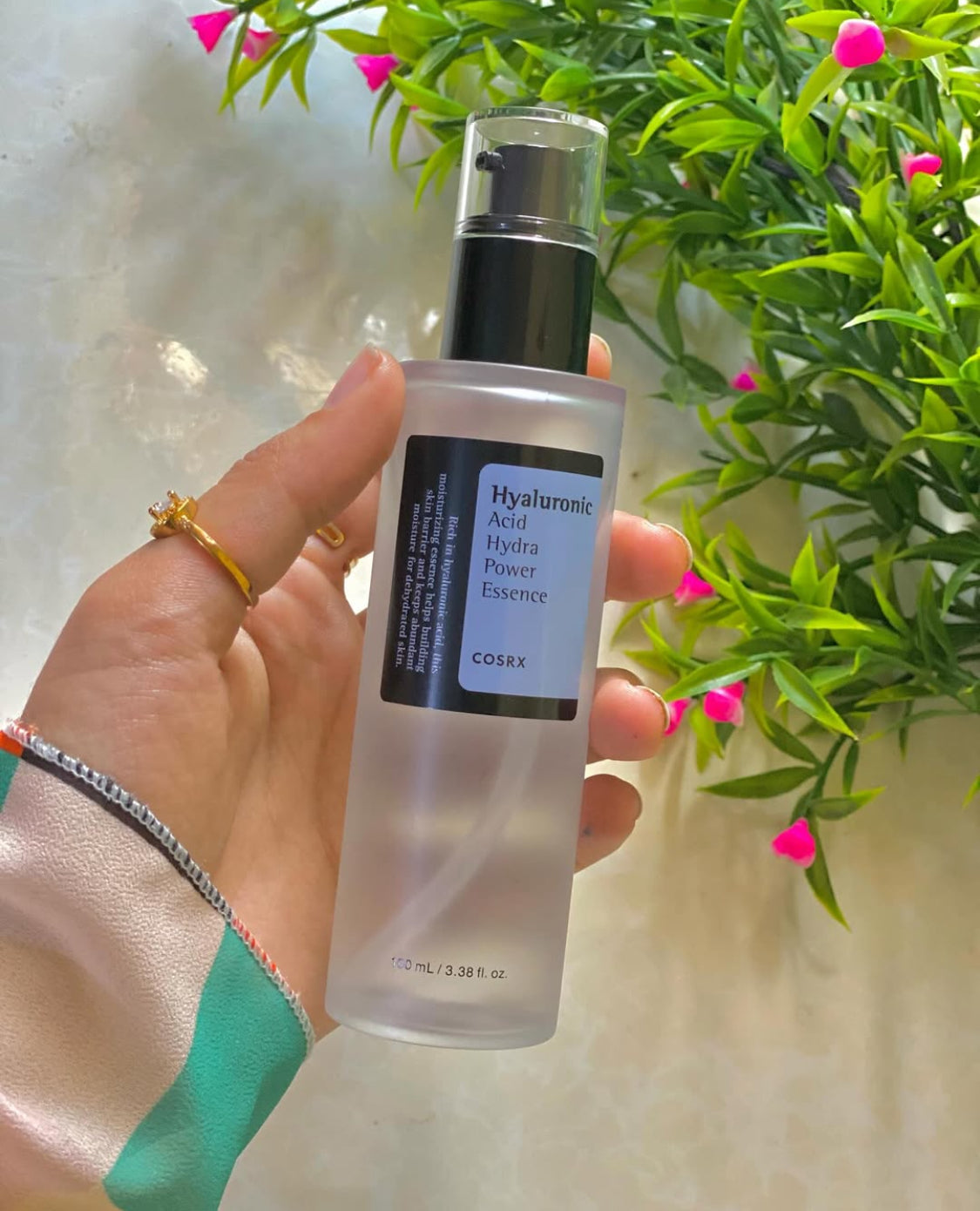 "CosRX Hyaluronic Acid Hydra Power Essence: Concentrated hyaluronic acid essence provides long-lasting hydration, plumps fine lines, and improves skin elasticity, revealing a smoother, more radiant complexion."