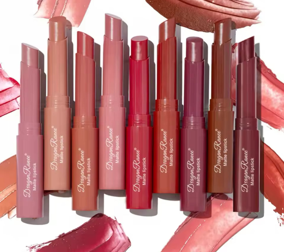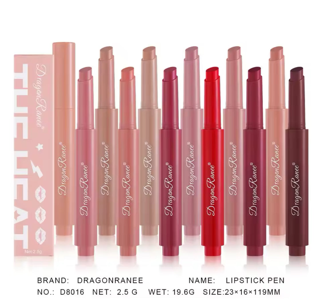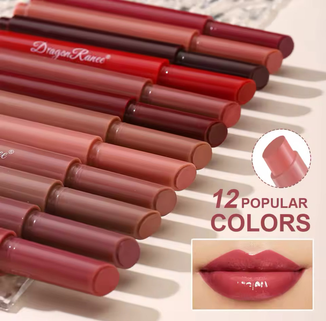 "Dragon Ranee 12 Colors Lipstick Pack: Waterproof, long-lasting, vibrant shades for all-day wear. Highly pigmented, moisturizing, and comfortable formula."