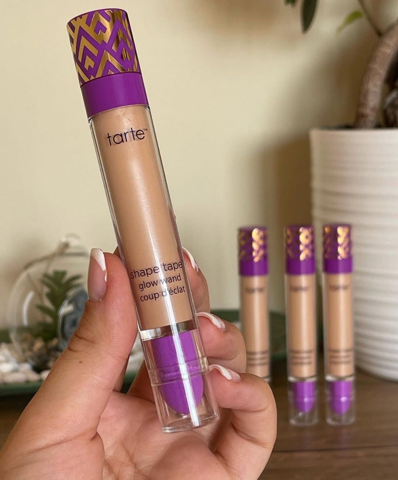 "Illuminate your complexion with Tarte's Shape Tape Glow Wand Concealer! This creamy, full-coverage concealer provides a radiant glow while concealing imperfections. Infused with hydrating ingredients and available in 30+ shades. Cruelty-free, vegan-friendly.